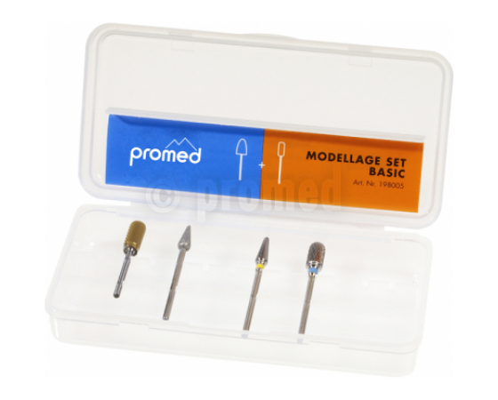 Informacije o izdelku "Modeling Set Basic" Popolna osnovna oprema za popolno modeliranje umetnih nohtov. Za obdelavo umetnih nohtov. Nastavki za profesionalce. vsebine izdelek št. 198421 Rezkar iz karbidne trdine, konus, rumena serija izdelek št. 198450 Rezkalo iz karbidne trdine, okrogel valj, modra serija izdelek št. 198540 Diamantni rezkar, majhen stožec izdelek št. 198551 Rezalnik iz karbidne trdine titana izdelek št. 961910 Design držalo za nastavke iz trde škatle, prozorno (Vsa brusna orodja z zaobljenim koncem stebla v standardni zobni velikosti 2,32 - 2,35 mm)